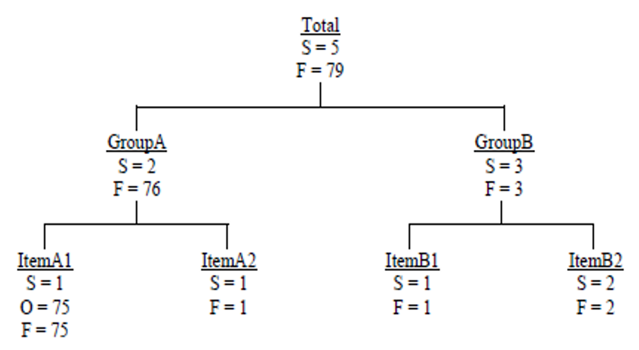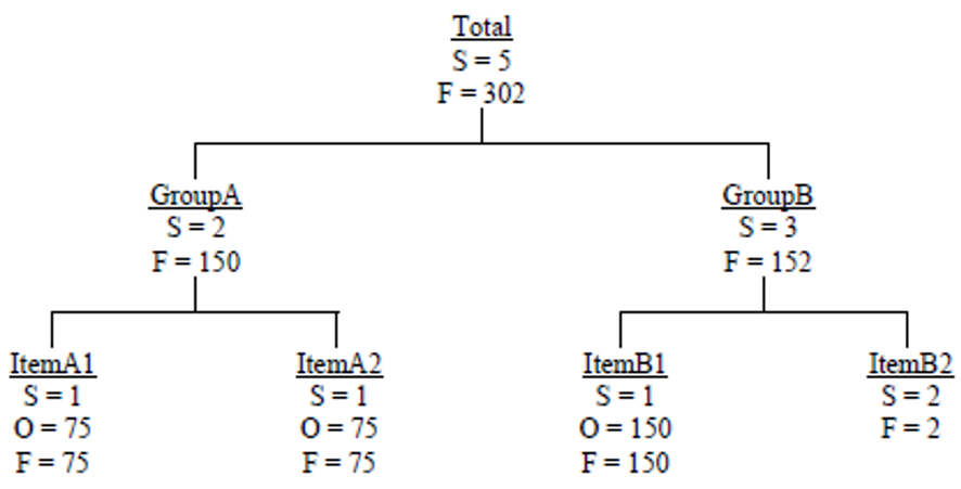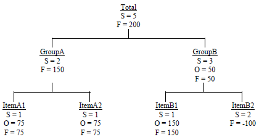 דוגמה 1 – מבנה היררכי כללי בשלוש רמות (הכל / קבוצות / פריטים)